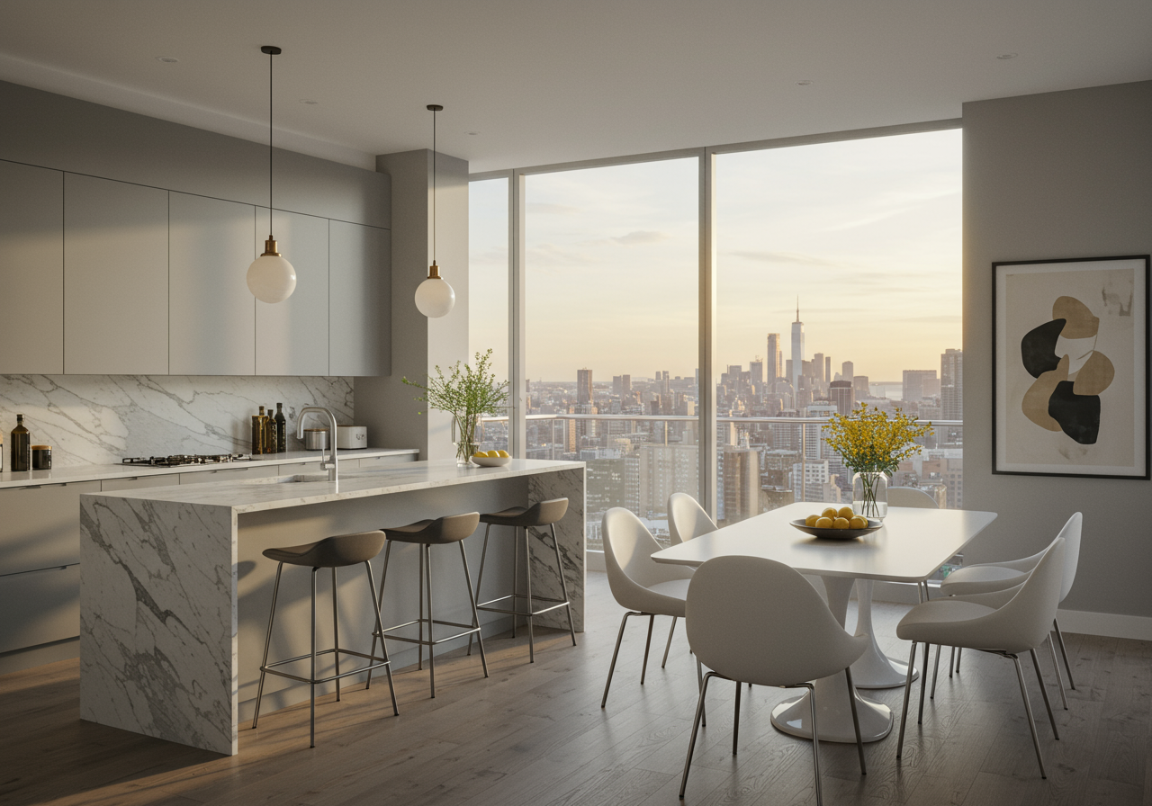 Rising 23 stories, this 72-unit glass and architectural-grade concrete tower was designed by Hill & West Architects with interiors by Whitehall Interiors. The building has views of the East River and Central Park. Additional amenities include a billiards lounge, fitness center, and library with fireplace and outdoor terrace.