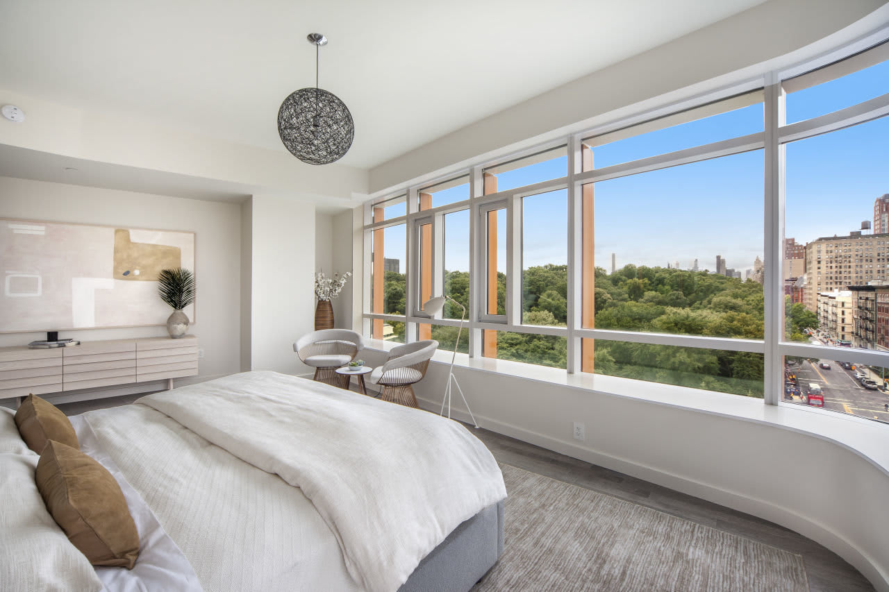 One of the five bedrooms in the penthouse at 285 W 110th St.
