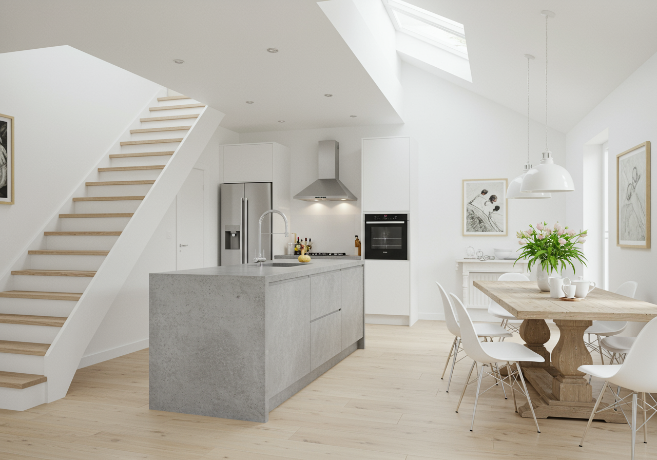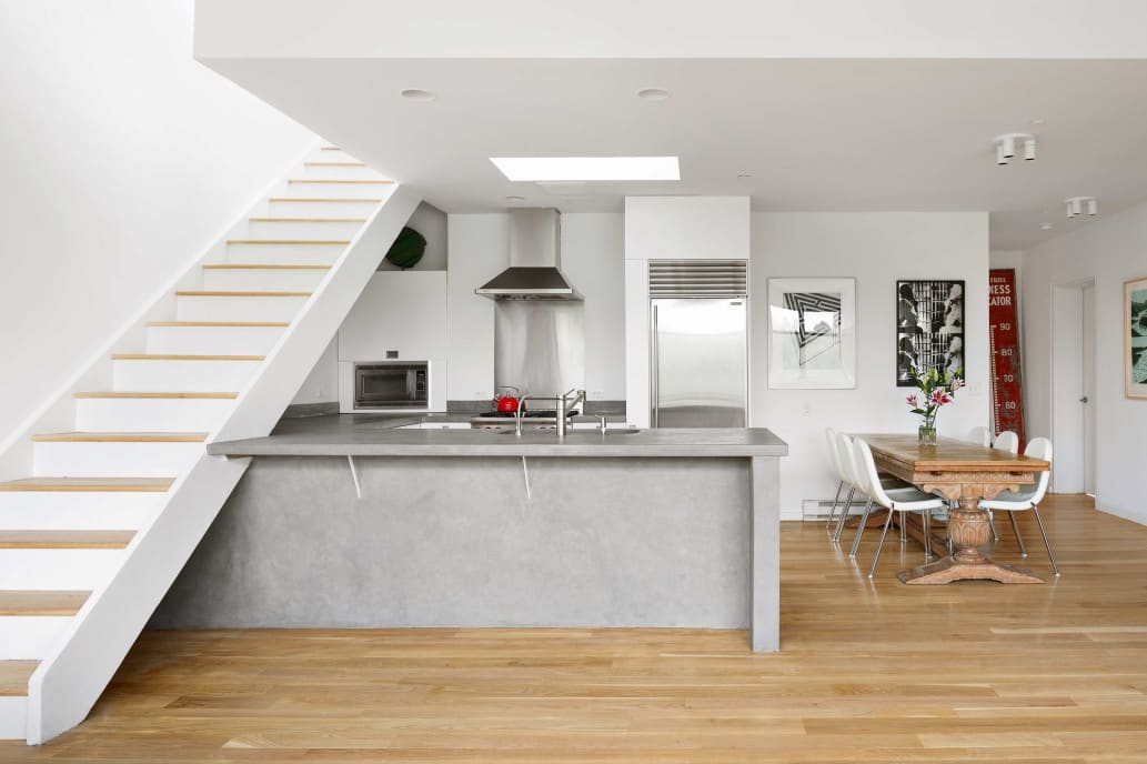 Additions include a custom concrete fireplace, a hand-crafted floor-to-ceiling bookshelf and lots of custom California closets.